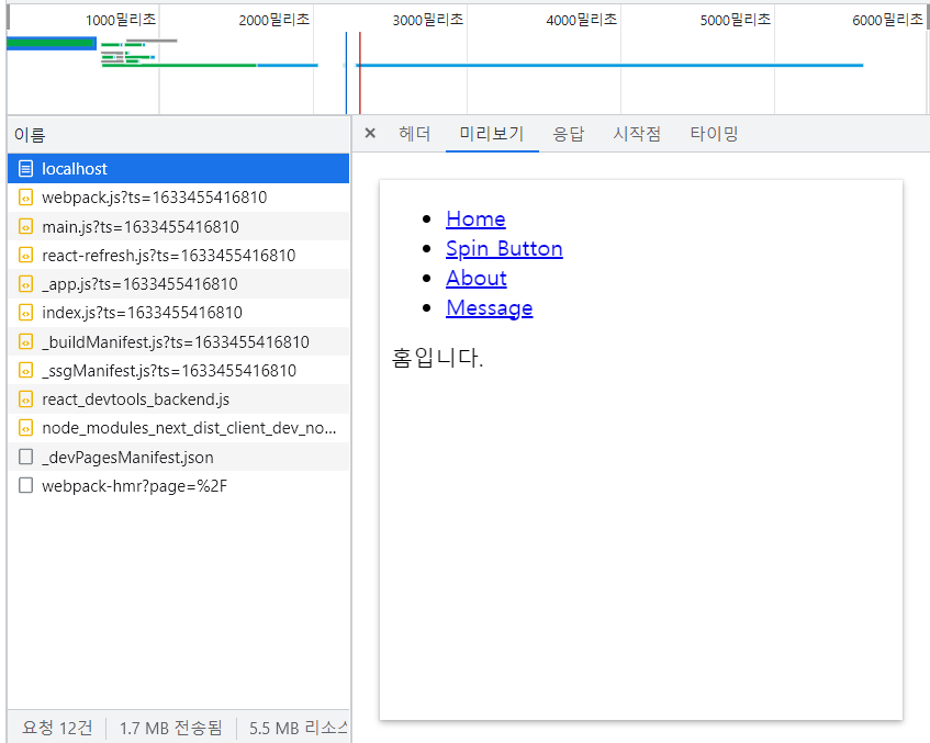 import '../styles/global.css'; const MyApp = ({ Component, pageProps }) => { return <Component {...pageProps} />; } export default MyApp;a. Component의 속성값은 요청한 페이지이다.