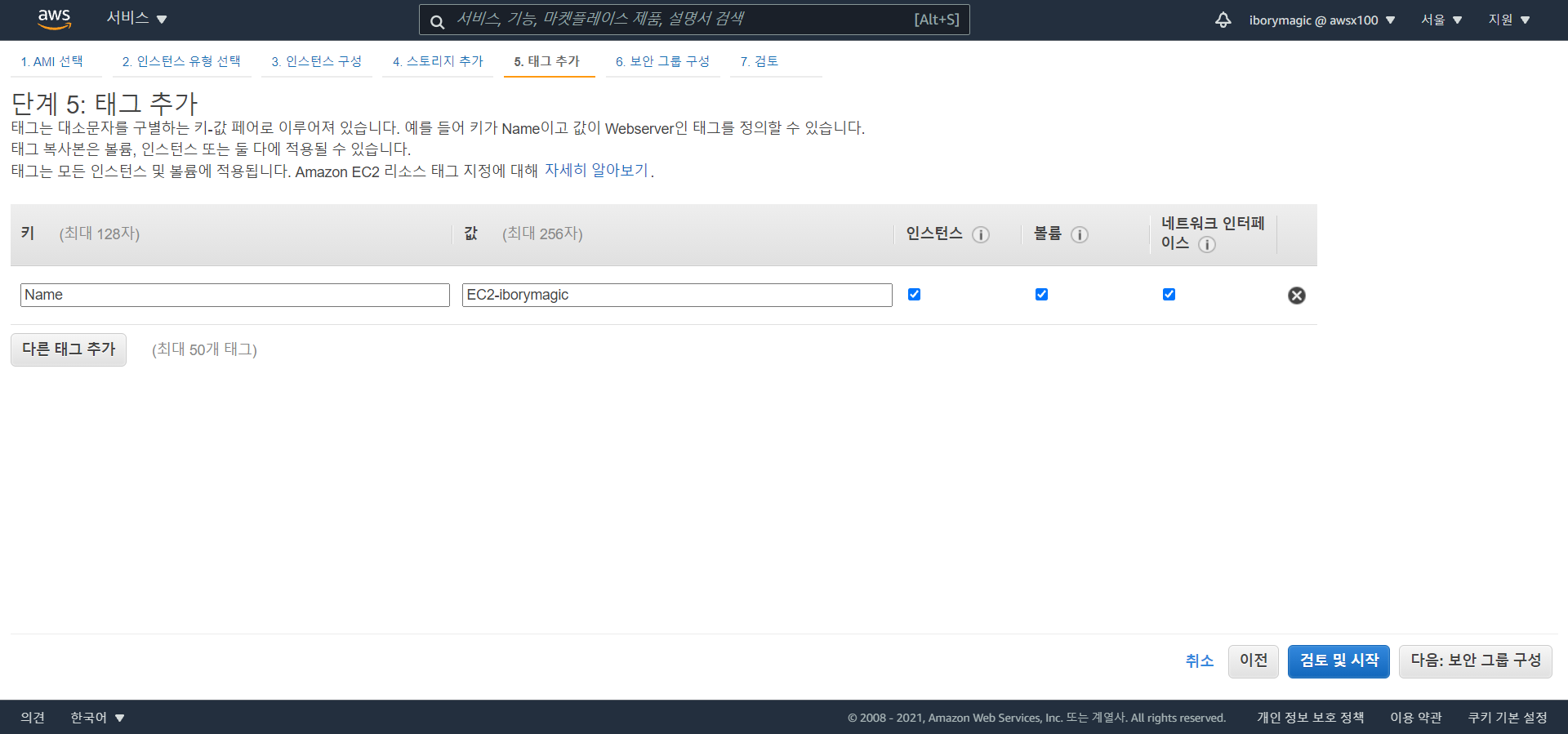 '검토 및 시작'이 아니고 '다음: 인스턴스 세부 정보 구성' 으로 넘어간다.