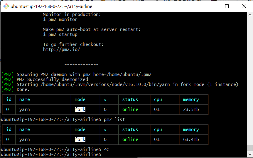 npm install pm2 -g그리고 나서 pm2는 당연히 프로젝트 폴더에 위치한 상태로 실행시켜주면 된다.