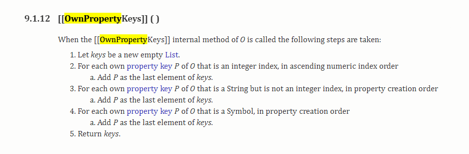 그래서 ownPropertyKeys의 성격에 따라 Number(Integer) > String > Symbol 의 순서가 보장된다고 함.