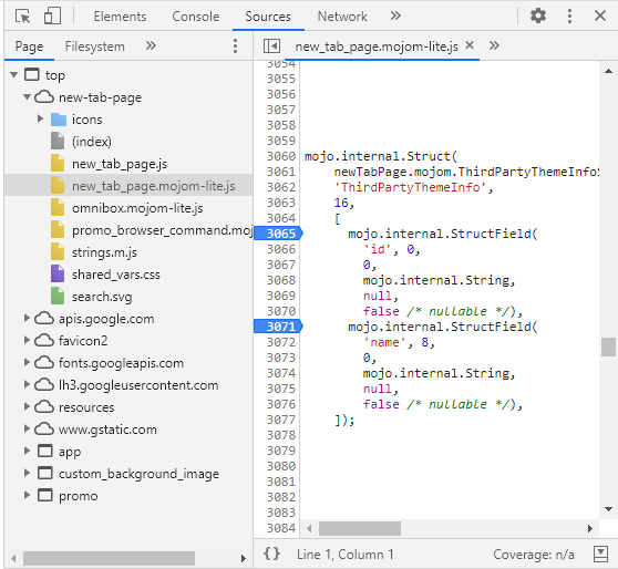 개발자도구의 Sources 탭에 가면 소스코드를 볼 수 있는데,