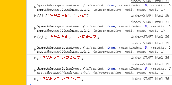 참고로 SpeechRecognition의 result 이벤트는 한 문장을 모두 말할 때까지 유지되었다가,