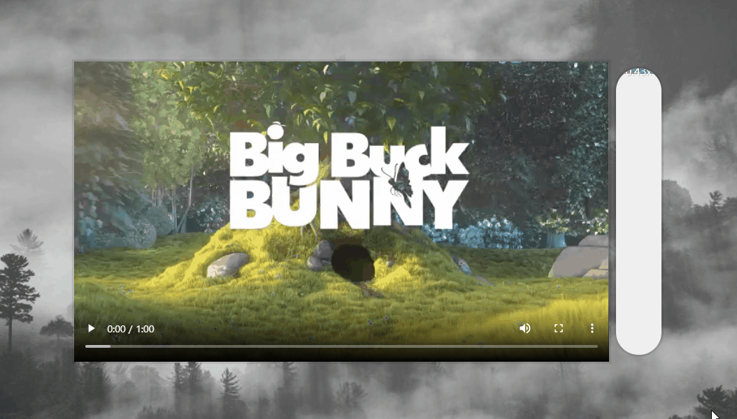 function handleMove(e) { const y = e.pageY - this.offsetTop; const percent = y / this.offsetHeight; const height = Math.round(percent * 100) + '%'; bar.style.height = height; const min = 0.4; const max = 4; const playbackRate = percent * (max - min) + min; bar.textContent = playbackRate.toFixed(2) + 'x'; video.playbackRate = playbackRate; }그러면 최종적으로 다음과 같은 깔끔한 동영상 배속 기능이 완성된다.