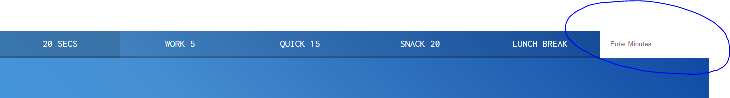 버튼들 옆에 'Enter Minutes'라고 적혀있는 input form이 하나 있다.