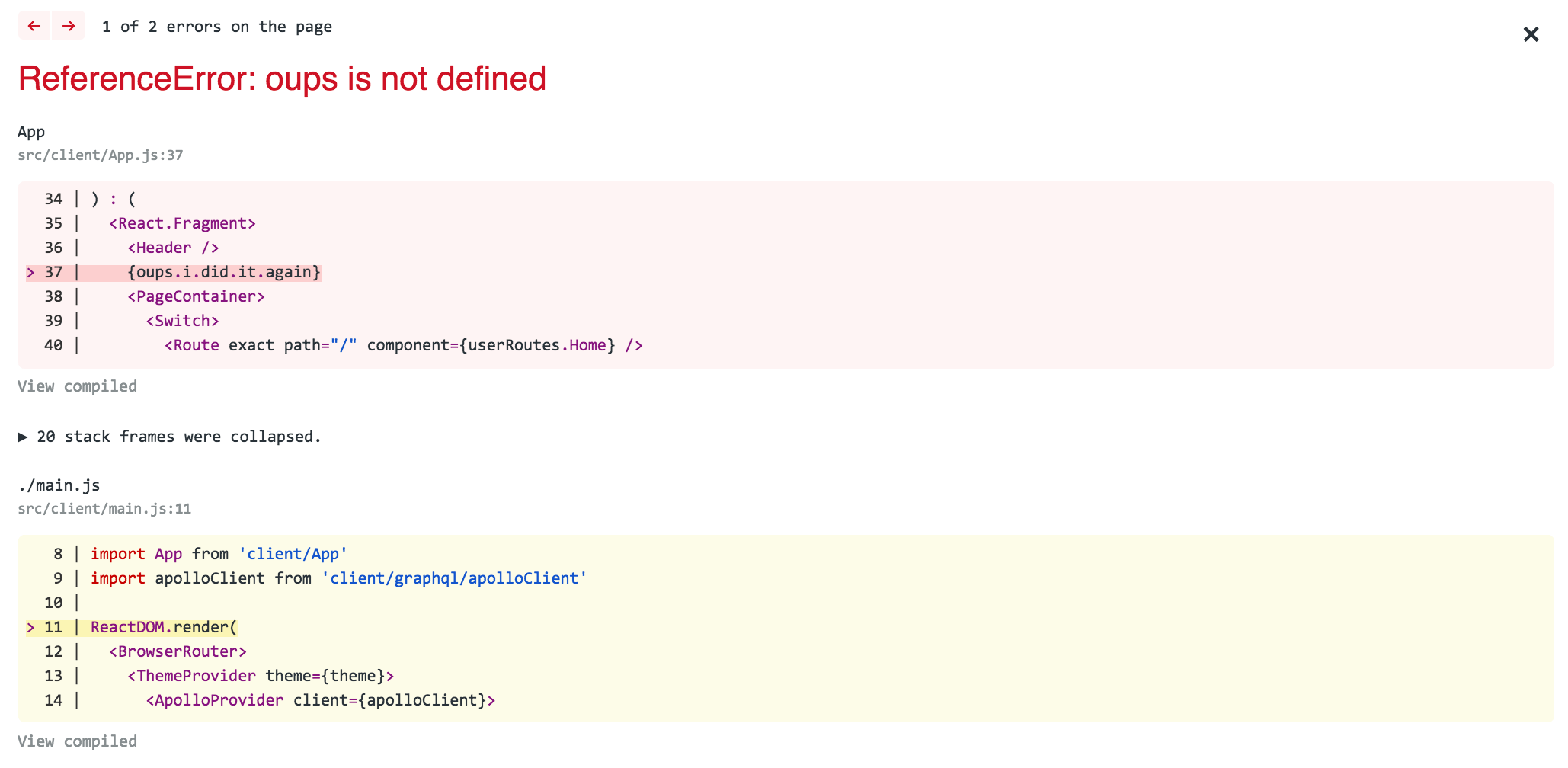 CRA에서 사용하고 있는 플러그인인데, 콘솔창을 굳이 열지 않더라도 에러가 발생했을 때