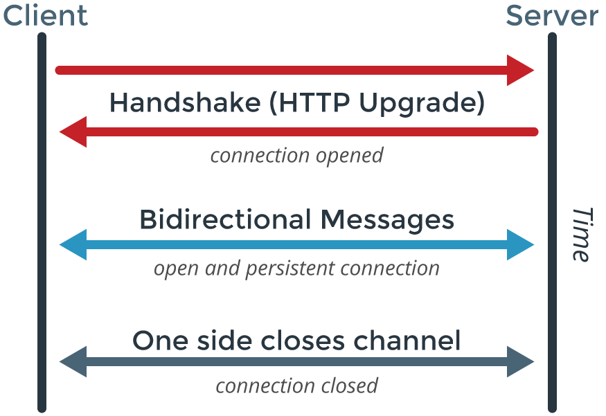 - TCP 또는 WebSocket 같은 양방향 네트워크 프로토콜을 기반으로 동작한다.