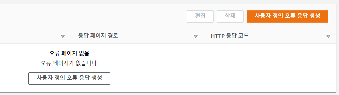 1. 우측 상단의 주황색 '사용자 정의 오류 응답 생성' 버튼을 누른다.