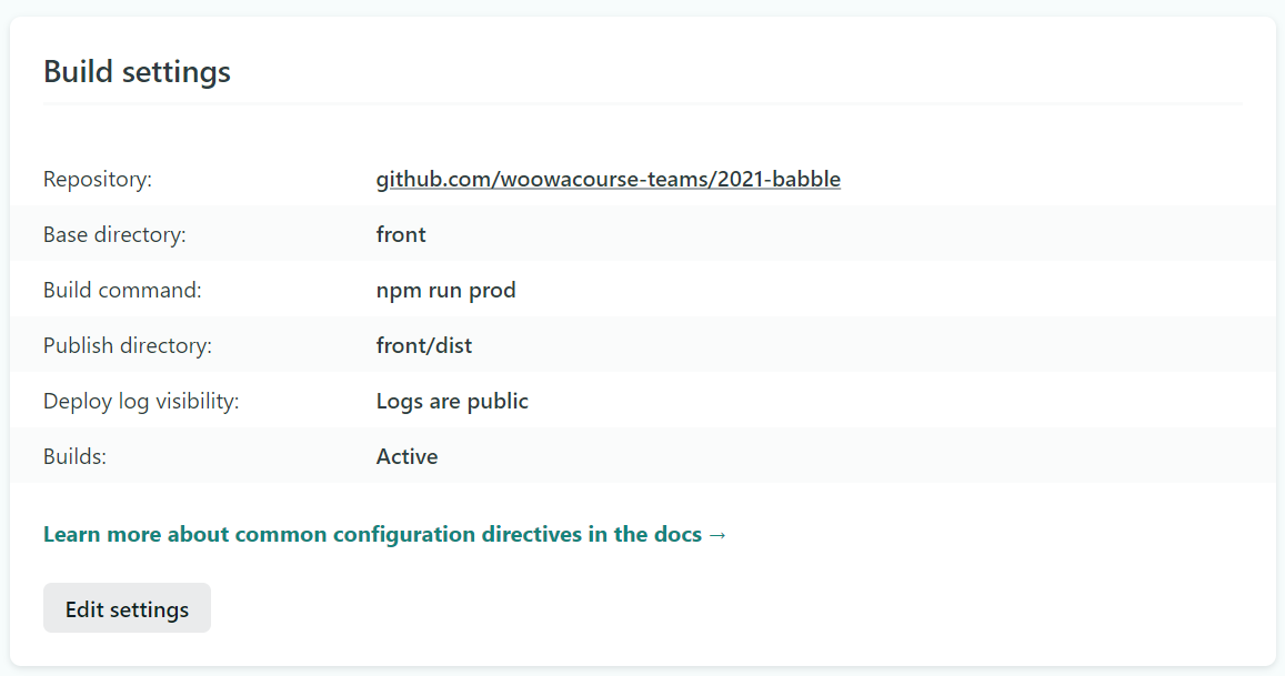 (Base directory가 '/front'라면 Publish directory는 '/front/abcd' 이런 식으로 prefix처럼 앞에 명시되어 있어야한다)