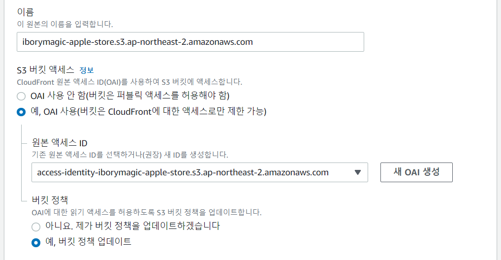 참고) 이전에 OAI를 따로 생성해놓지 않았더라도,