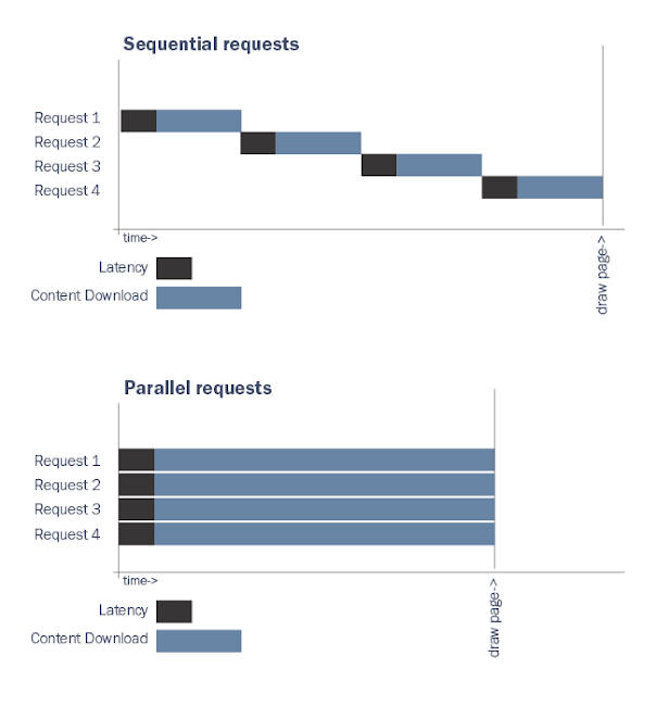 그런 리소스들(HTML, CSS, JS 등등)같은 경우에는 병렬 다운로드가 전체 로딩 시간을 줄여주므로 효과적이겠다.